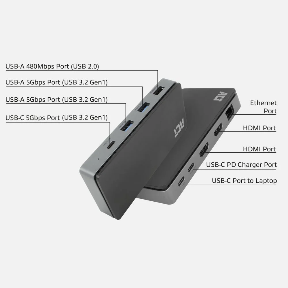 ACT AC7093 | USB-C 4K Dockingstation | 2x HDMI + Ethernet + USB-C/USB-A + PD | 1 m Kabel | Geöffnet