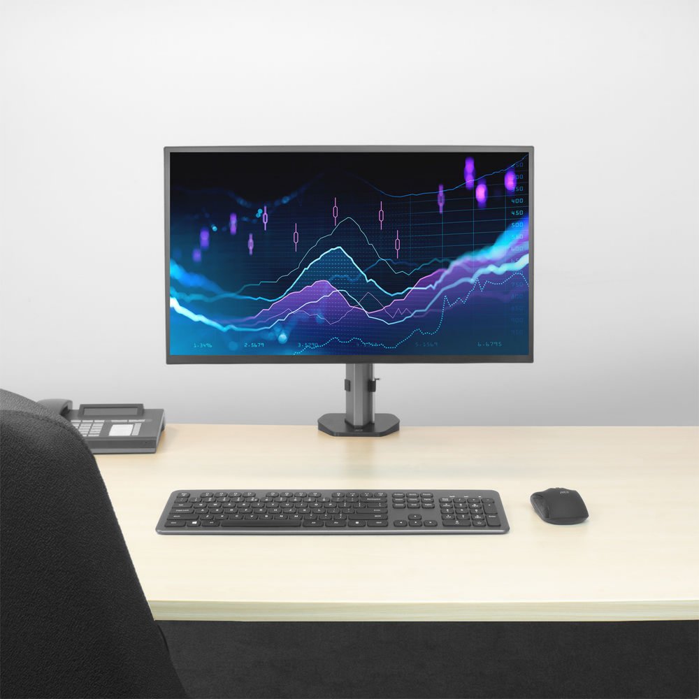 Die AC8335 Monitor-Schreibtischhalterung ist höhenverstellbar und hat drei Drehpunkte. Neigen, schwenken und drehen Sie Ihren Bildschirm, um einen idealen ergonomischen Arbeitsplatz zu schaffen und das Risiko von Nacken-, Rücken- und Schulterbeschwerden zu verringern. Mit dem integrierten Kabelmanagement bleiben die Kabel außer Sichtweite.