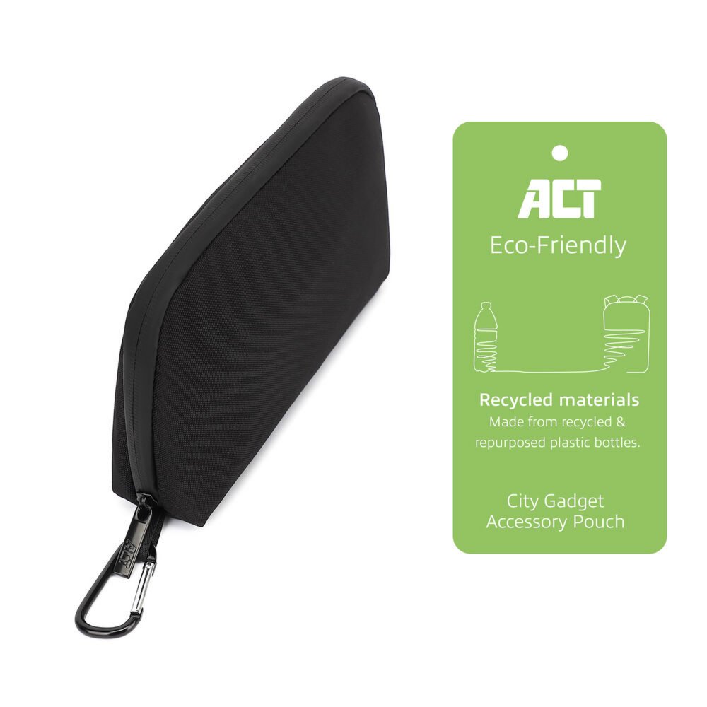 Das AC8501 Accessoire-Etui besteht aus rPET-Material, das aus recycelten und wiederverwendeten Plastikflaschen gewonnen wird.