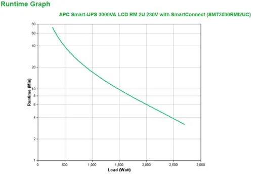 Die zu erwartende Batterielebensdauer lässt sich leicht aus dem Laufzeitdiagramm ablesen, das sich zwischen den Produktbildern befindet. So lässt sich leicht erkennen, wie lange die USV bei einer bestimmten Last Notstrom liefern wird.