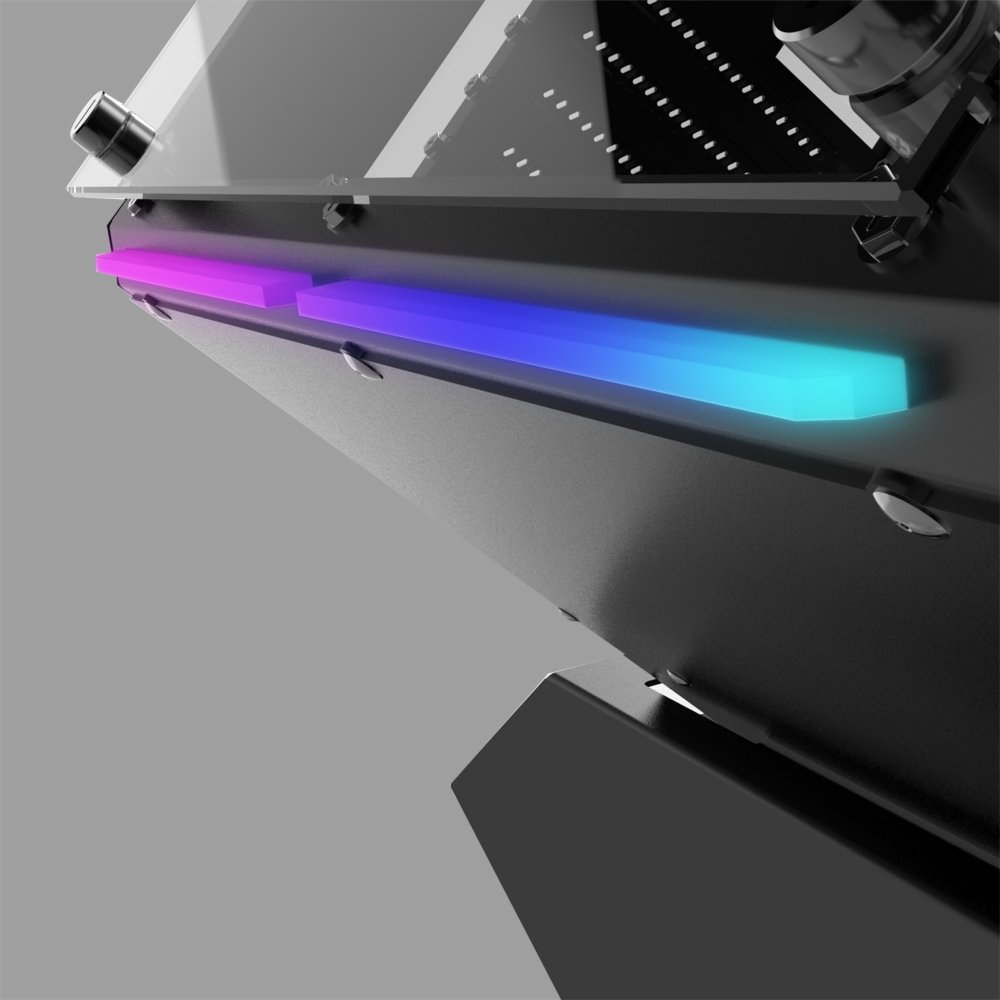 Auffälliges Design: Der Cube 802 zeichnet sich durch eine markante kubische Struktur mit Glaspaneelen aus, die einen vollständigen Blick auf alle internen Komponenten bieten, perfekt um LED-Beleuchtung und High-End-Teile zu präsentieren.