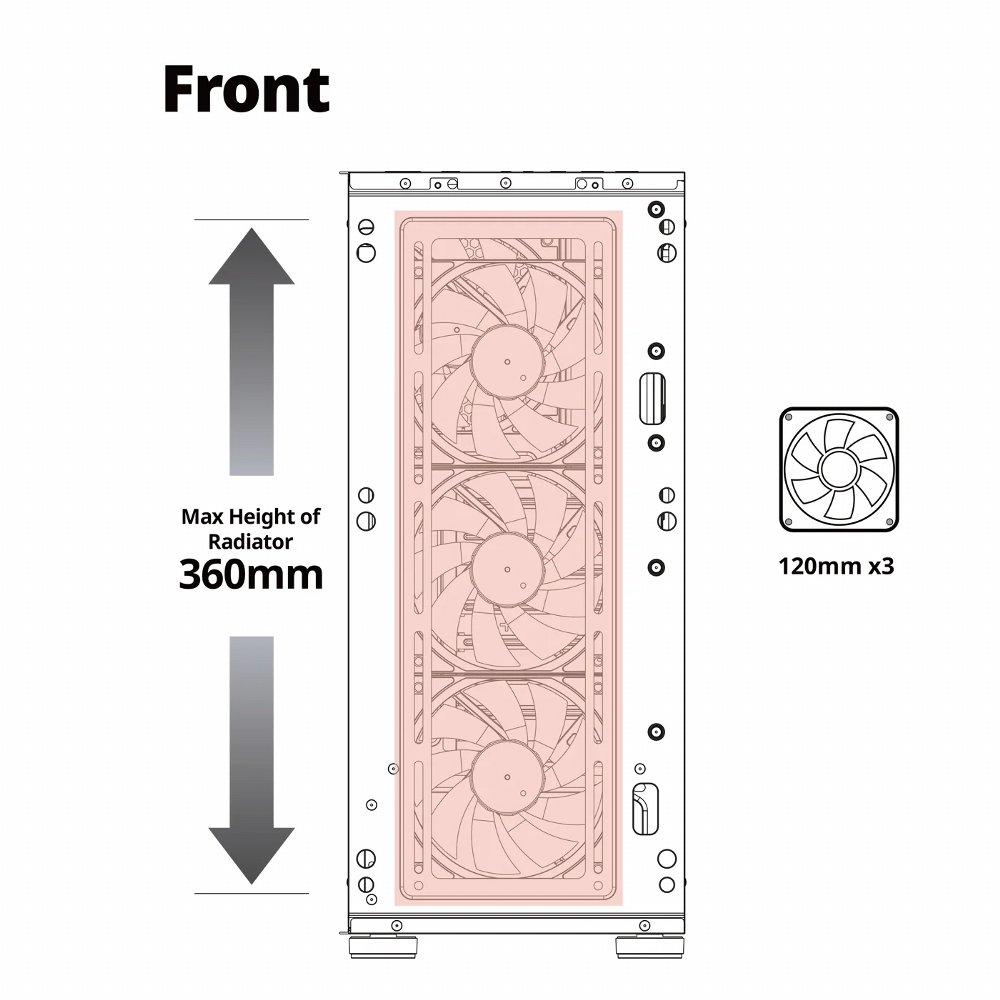 Azza Sentinel. Formfaktor: Midi Tower, Typ: PC, Produktfarbe: Schwarz. Installierte Lüfter (Vorderseite): 2x 120 mm, Durchmesser unterstützte Vorderseitenlüfter: 120 mm, Installierte Lüfter hinten: 1x 120 mm. Unterstützte Hard-Disk Drive Größen: 2.5,3.5". Breite: 203,5 mm, Tiefe: 415,5 mm, Höhe: 454 mm