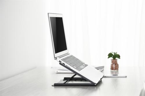 Der mobile Notebook Ständer von DIGITUS® benötigt dank der schlanken Bauform und auf Ihrem heimischen Schreibtisch wenig Platz. Erstellen Sie mit wenigen Handgriffen einen ergonomisch perfekten Arbeitsplatz für Ihr Notebook. Der Winkel des Ständers ist bequem in 5 Stufen einstellbar und lässt sich somit an jede Art von Notebook oder Tischhöhe anpassen. Schonen Sie Ihre Geräte durch die offene Rahmenkonstruktion, die stets für optimale Belüftung sorgt. Zugelassen für Notebooks bis 5 kg.