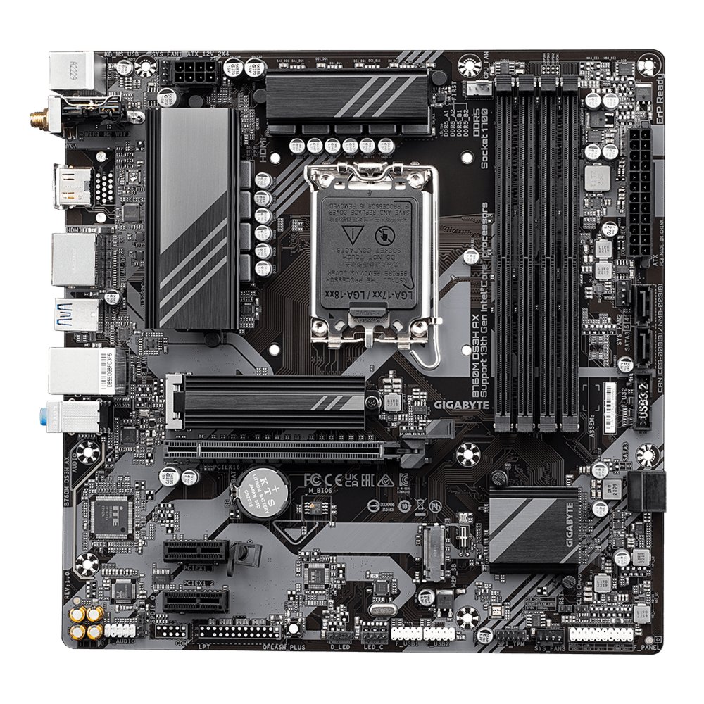 Gigabyte B760M DS3H AX (rev. 1.x). Prozessorhersteller: Intel, Prozessorsockel: LGA 1700, Kompatible Prozessoren: Intel® Celeron®, Intel® Core™ i3, Intel® Core™ i5, Intel® Core™ i7, Intel® Core™ i9,.... Unterstützte Arbeitsspeicher: DDR5-SDRAM, RAM-Speicher maximal: 128 GB, Arbeitsspeicher Typ: DIMM. Unterstützte Speicherlaufwerk-Schnittstellen: M.2, PCI Express 4.0, SATA III, Unterstützte Speicherlaufwerke: HDD & SSD, RAID Level: 0, 1, 5, 10. Maximale Auflösung: 4096 x 2304 Pixel. USB-Stecker: USB Typ-A, USB Typ-C