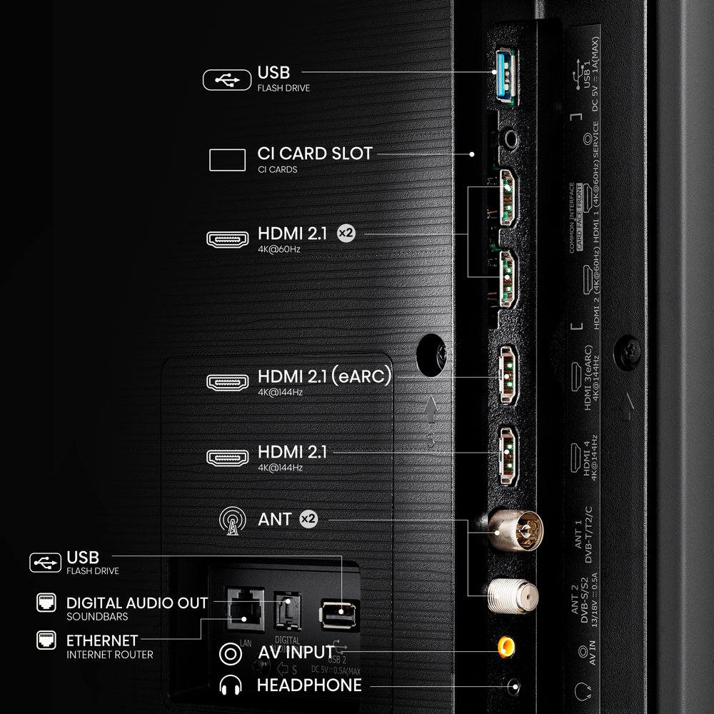Der Hisense 55E7NQPRO unterstützt verschiedene digitale Rundfunkformate wie DVB-C, DVB-S, DVB-S2, DVB-T, DVB-T2, um eine große Auswahl an TV-Kanälen mit exzellenter Bildqualität bereitzustellen.