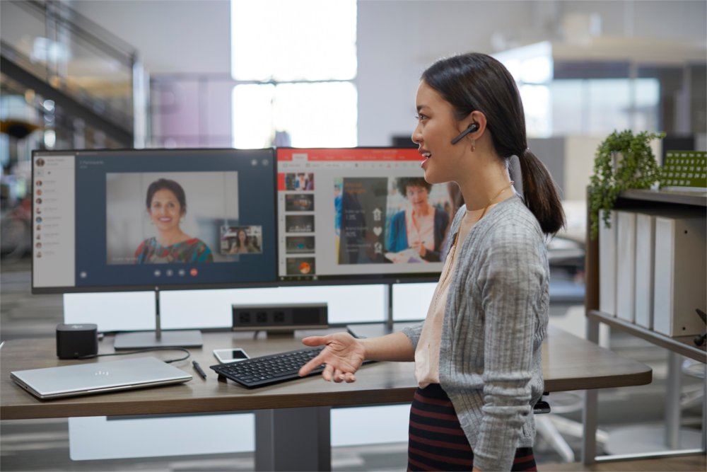 - Sehen Sie alle Farben und Details Ihrer Projekte mit einer superschnellen Verbindung zu zwei externen 4K-Displays, sobald Sie Ihr Notebook an die Dockingstation anschließen.