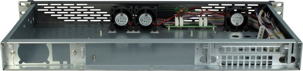Das IPC 1U-K-125L bietet intern Platz für wahlweise 1 x 3.5" oder 2 x 2.5"-Festplatten. Drei serienmäßige 40mm-Lüfter, welche sich intern direkt hinter der Frontblende befinden, sorgen zuverlässig für eine optimale Kühlung.