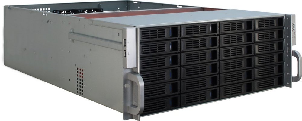 So bietet das IPC 4U-4424 die Möglichkeit vierundzwanzig 2.5" oder 3.5" Hot-Swap Festplatten und zwei 2.5" oder eine 3.5" interne Festplatte einzubauen. Das IPC 4U-4424 verfügt über fünf serienmäßig eingebaute Lüfter, wovon sich drei 120mm intern direkt hinter den Laufwerkshalterungen befinden. Zwei weitere 80mm Lüfter an der Rückseite sorgen zudem zuverlässig für eine optimale Kühlung.