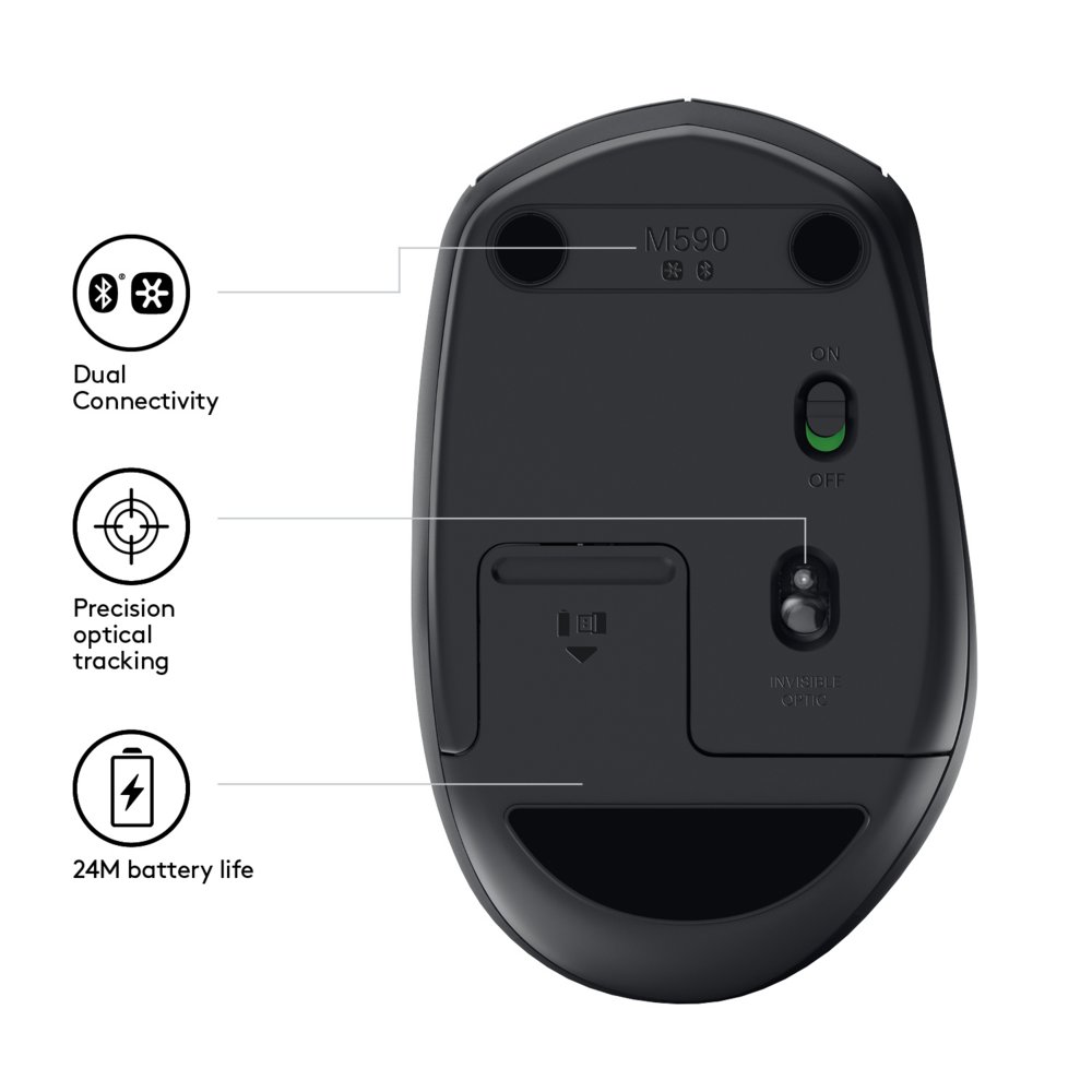 Logitech M590 Multi-Device Silent | Kabellose Maus | Rechtshänder | RF + Bluetooth | 1000 DPI | Schwarz