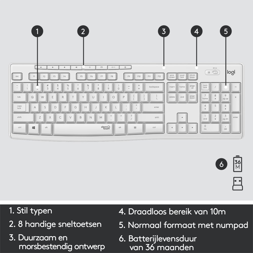 KYB Logitech MK295 Keyboard Silent Wireless White