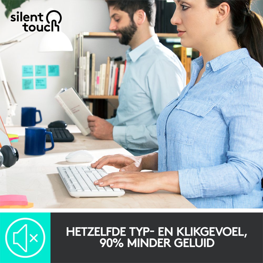 Arbeiten Sie konzentriert und ablenkungsfrei. Wir präsentieren die Logitech MK295 Silent Wireless Combo mit SilentTouch – eine exklusive Logitech Technologie, die über 90 % der Tastatur- und Mausgeräusche eliminiert. Damit arbeiten Sie ganz wie mit der weltweit meistverkauften Combo, aber ohne störende Klick- und Tippgeräusche.
