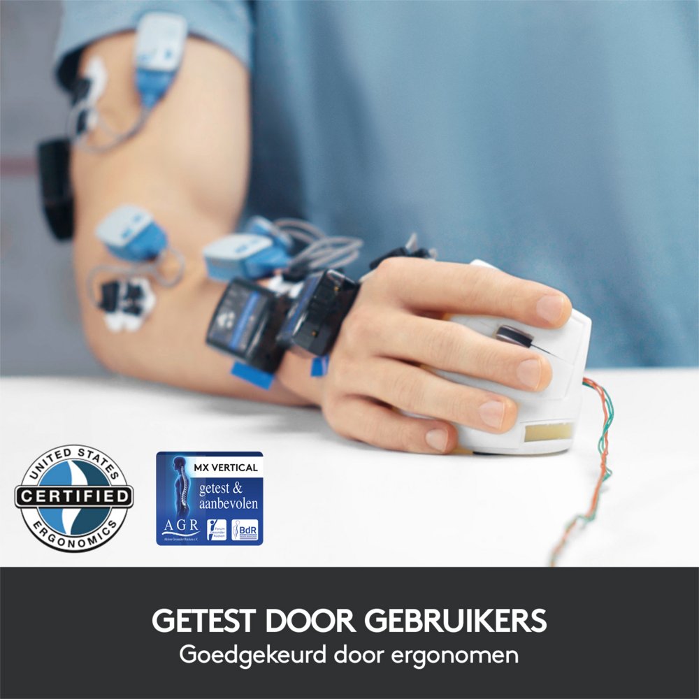 Die natürliche Handshake-Position der MX Vertical reduziert die Muskelaktivität um 10% im Vergleich zu Standardmäusen, ohne Einbußen bei der Gesamtleistung.