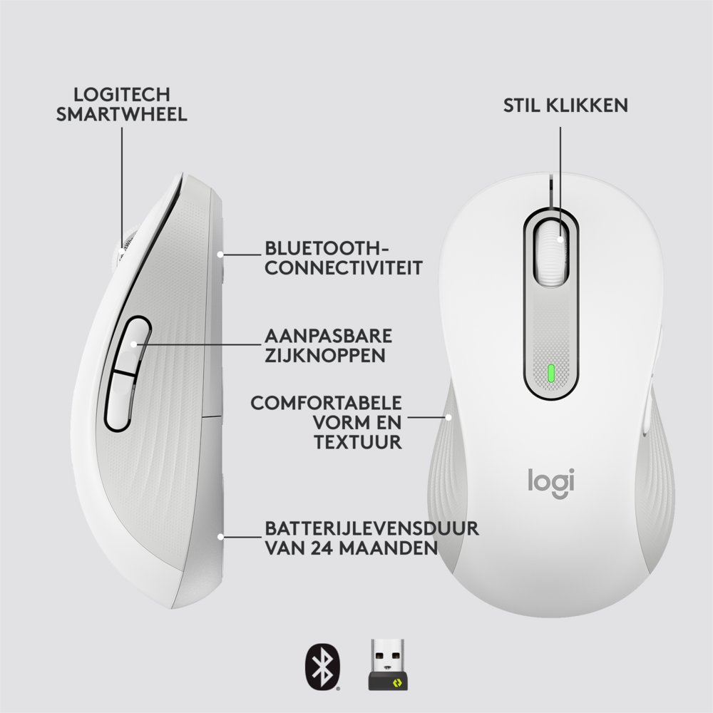 Logitech Signature M650 | Kabellose Maus | Linkshändig | RF + Bluetooth | 2000 DPI | Weiß