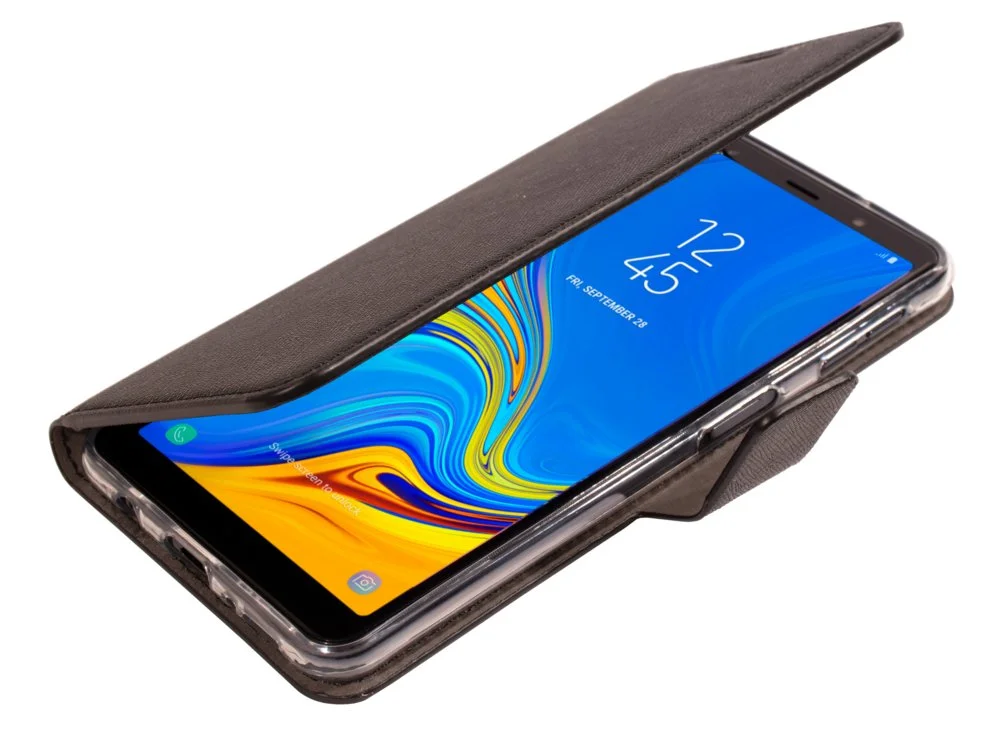 Mobiparts 84180. Etui-Typ: Geldbörsenhülle, Markenkompatibilität: Samsung, Kompatibilität: Galaxy A7 (2018), Maximale Bildschirmgröße: 15,2 cm (6 Zoll), Oberflächenfärbung: Monochromatisch, Produktfarbe: Schwarz, Anzahl der Kartentaschen: 3