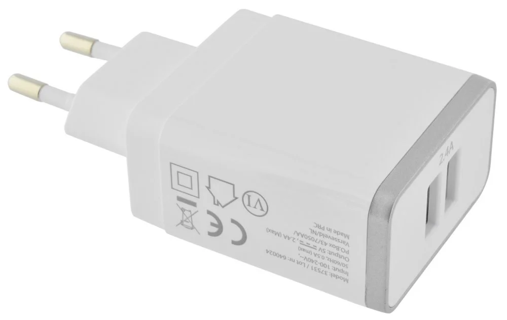 Mobiparts Wandladegerät | Dual USB-A Ladegerät 12W / 2,4A | Weiß