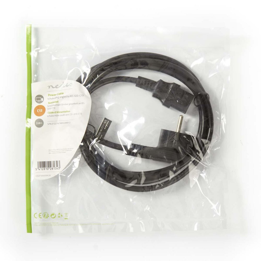 Nedis CEGP10000BK20 | 2 m Stromkabel | Typ F (CEE 7/7) abgewinkelt auf IEC-320-C13 | Schwarz | 10 A | PVC
