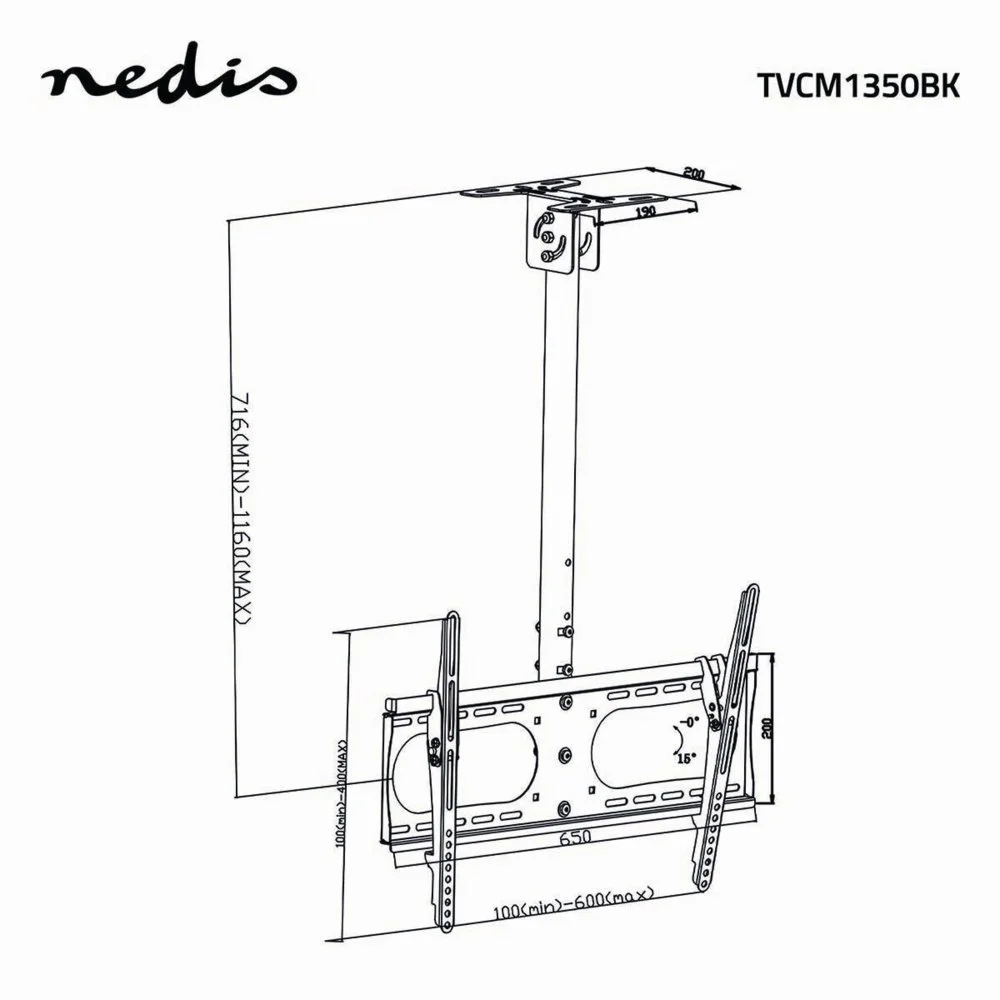 Nedis TVCM1350BK | Vollbewegliche TV-Deckenhalterung | 42–65 Zoll | Max. 45 kg | VESA 600x400