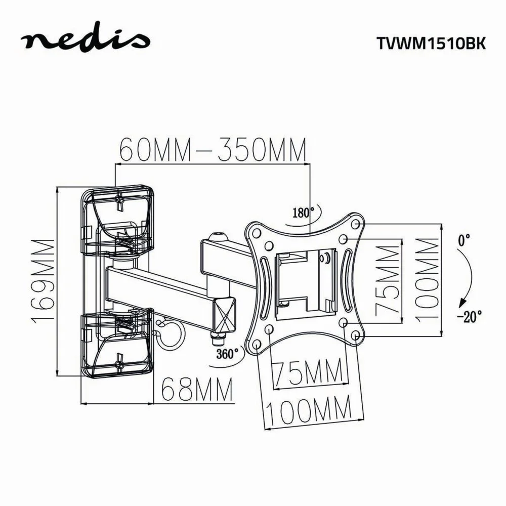 Nedis TVWM1510BK. Höchstgewichtskapazität: 15 kg, Minimum Bildschirmgröße: 33 cm (13 Zoll), Maximale Bildschirmgröße: 68,6 cm (27 Zoll), Minimale VESA-Halterung: 75 x 75 mm, Maximale VESA-Halterung: 100 x 100 mm. Produktfarbe: Schwarz