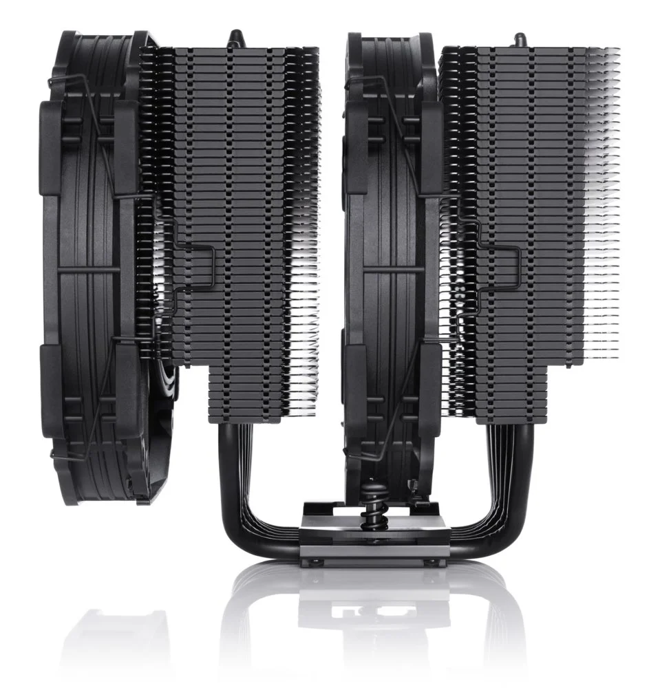 Der NH-D15 chromax.black ist von Kopf bis Fuß schwarz: Mit seinem schwarz beschichteten Kühlkörper, schwarzen Lüftern inklusive schwarzer Anti-Vibrations-Pads, schwarzen Lüfterklammern und schwarzen Montageteilen eignet er sich perfekt für komplett in Schwarz gehaltene Systeme und passt auch gut zu anderen Farbschemata.