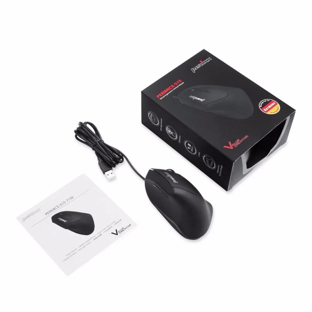 Die PERIMICE-515II ist eine kabelgebundene ergonomische vertikale Maus, ideal für mittelgroße und große rechtshändige Benutzer. Diese Maus verfügt über ein 6-Tasten-Design und einen optischen Sensor mit einer Bewegungsauflösung von 1600 DPI. Die Maus ist mit Tasten zum Vor- und Zurückblättern in Internetbrowsern und einer DPI-Umschalttaste ausgestattet. Dank des USB Type-A Anschlusses ist die Maus einfach zu verwenden mit Plug and Play. Die Abmessungen der Maus betragen 11,8 x 6,8 x 6,6 Zentimeter. Die PERIMICE-515II wird für Benutzer mit repetitiven Belastungsverletzungen (RSI) und Personen empfohlen, die lange Zeit am Computer arbeiten.
