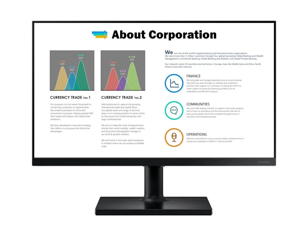 Betreten Sie die Welt der visuellen Meisterwerke mit dem Samsung F24T450FZU. Mit einer Bildschirmdiagonale von 61 cm (24 Zoll) werden jedes Detail gestochen scharf in einer beeindruckenden Auflösung von 1920 x 1080 Pixel dargestellt. Dieser Monitor bietet nicht einfach nur Bilder; er liefert ein fesselndes Full-HD-Erlebnis, das Ihre Erwartungen übertrifft.