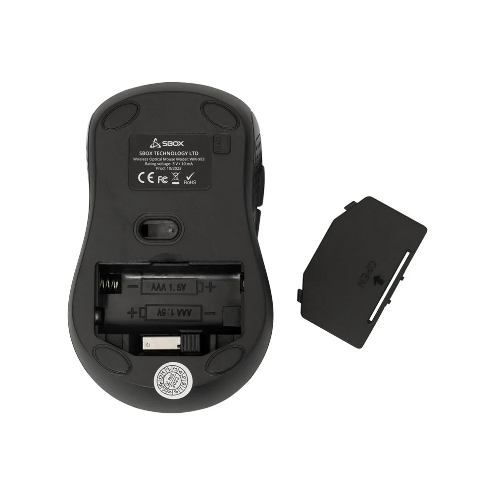 Mit Abmessungen von 108 x 66 x 38 mm und einem Gewicht von 129 Gramm ist die SBOX WM-993R kompakt und leicht, ideal für den Einsatz zu Hause oder unterwegs. Die Maus wird mit zwei AAA-Batterien betrieben, die im Lieferumfang enthalten sind, und überzeugt mit einer beeindruckenden Lebensdauer von 3 Millionen Klicks, was für eine lange Zuverlässigkeit spricht.