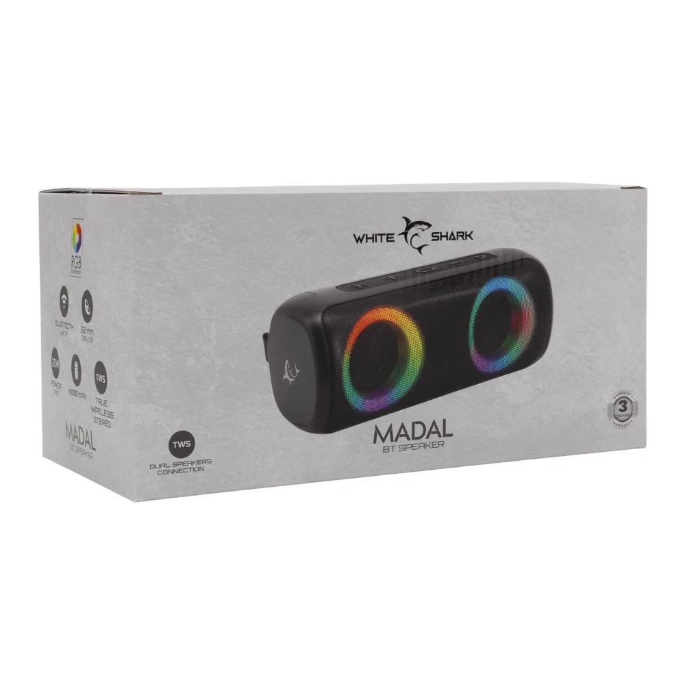 White Shark GBT-876 MADAL | Tragbarer Bluetooth-Lautsprecher | 2×10W RMS | 4000mAh Akku | RGB-Beleuchtung